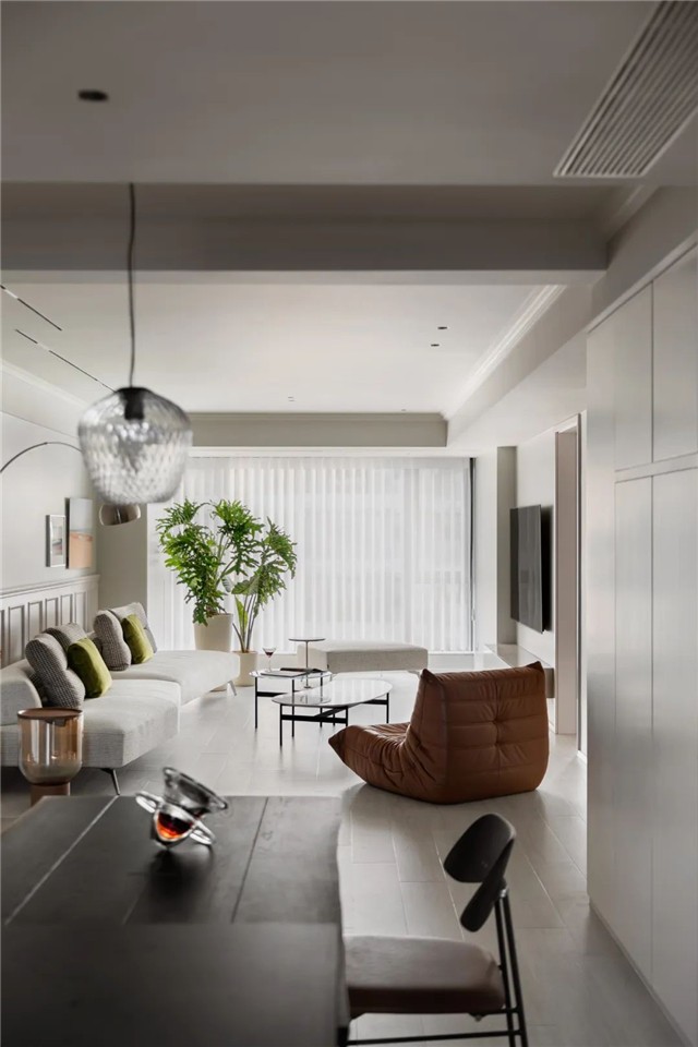 破寻常思维壁垒,改变区隔的存在形式。借以结构穿插替代封闭墙体,既立隔断又得梳妆台,优化统筹空间愈发有兴味。