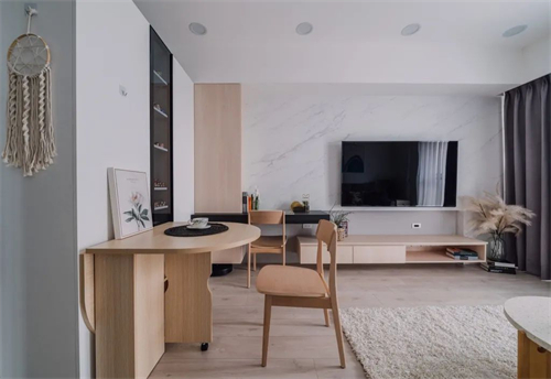 喜欢简约的装修风格,整体以白色调为主,搭配上木质家具,为敞亮的空间中,注入了自然温馨。中山帮忙装修网公司分享优秀的装修案例。
